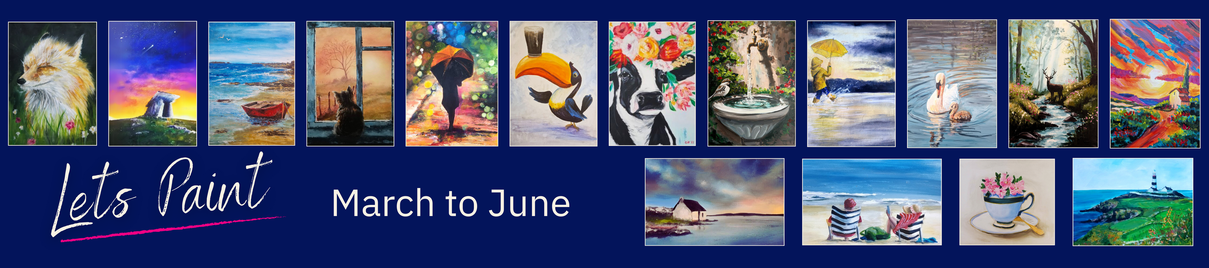 We create relaxed, welcoming art experiences throughout Ireland where anyone can get that much-needed headspace, have a laugh, and surprise themselves with a wall-worthy masterpiece.